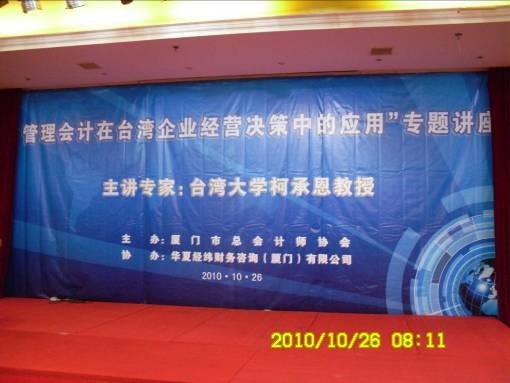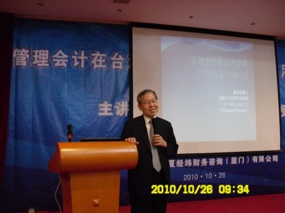 為了搭建廈門與臺(tái)灣兩地公司治理與會(huì)計(jì)的交流平臺(tái),在ECFA時(shí)代更好地推動(dòng)廈門企業(yè)高級管理人員和高級財(cái)會(huì)人才與臺(tái)灣同行的專業(yè)交流、合作,服務(wù)兩岸的經(jīng)濟(jì)建設(shè)與發(fā)展,由廈門市總會(huì)計(jì)師協(xié)會(huì)主辦,華夏經(jīng)緯財(cái)務(wù)咨詢(廈門)有限公司協(xié)辦,特邀臺(tái)灣大學(xué)著名會(huì)計(jì)教授、企業(yè)管理專家柯承恩博士主講的“管理會(huì)計(jì)在臺(tái)灣企業(yè)經(jīng)營決策中的應(yīng)用”專題講座昨天成功舉辦。